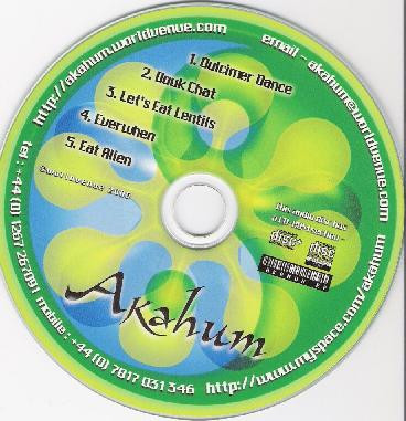 Amanti della psichedelia elettro cosmica, gli Akahum sono ciò che stavate cercando! Gruppo inglese che ruota intorno alla figura di David Unlimbo (chitarre, synth), coadiuvato dai sodali Paul Csordas (batteria, percussioni) e Lyndon Izzard (basso). Nel loro disco d’esordio (un mini di cinque brani con presentazione lisergica che potrete gustare sul vostro pc) ci propongono esplosive sonorità psych rock, figlie dirette degli Ozric Tentacles e dell’elettronica più dinamica. Ottime capacità tecniche, intrigante scrittura dei brani, atmosfere rarefatte e il gioco è fatto. Gli Akahum si candidano come nuovi alfieri dell’era psichedelica.La fuga dalla realtà comincia con la melodia avvolgente di “Dulcimer dance”, prende una scossa improvvisa con l’accelerazione di “Douk chat” (che linea aggressiva di chitarra!), rifiata con “Let’s eat lentils”, luogo nel quale tentazioni acustiche si contaminano con profumate visioni d’Oriente. “Everwhen” è un momento space ambent espanso e dilatato, perfetto per bilanciare la trance elettronica scatenata dai ritmi della conclusiva “Eat alien”.