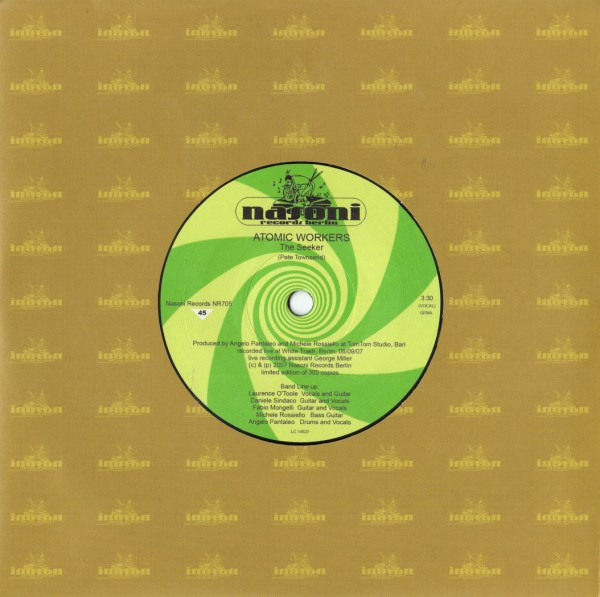 45 giri diviso tra Atomic Workers che pagano tributo alla classica “The Seeker” degli Who, resa in maniera avvincente dal caratteristico trademark acido del gruppo, e gli Hypnosis che scelgono come estratto del loro terzo album il suggestivo hard/psych di “High Tide Rollin”, che rimanda all’età dell’oro, quando sullo stesso palco duellavano Quicksilver Messenger Service e Grand Funk Railroad. Edizione limitata a 300 copie.