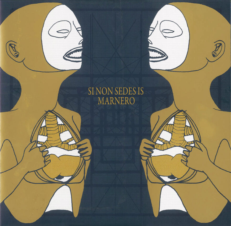 Il lato più selvaggio e compatto del lotto è quello dei Marnero. La band capitanata da John D. Raudo e Ottone (voce e chitarra il primo, batteria il secondo) dei Laghetto, mostra un’epifania evoluta e molto più adulta. I tempi dei Laghetto sono andati ma rivivono in parte in questi tre brani. Testi sempre in italiano, cinici e più improntati ad un distacco ‘carmelobeniano’, lo sberleffo lascia il posto ad una maturità compositiva di maggior respiro dove le parti vocali si alternano tra parti recitate e parti urlate. Come le onde durante un maremoto, anche durante il maelstrom resiste un briciolo di lucidità e tutti e tre i brani si snodano lungo un percorso ora accidentato, ora più riflessivo. Il post-punk dei Massimo Volume (la voce di Raudo è costante nell’evocare lo spook di Mimì Clementi) che incontra il post core dei Neurosis di metà anni 90, i Laghetto più evoluti (tracce come “Requiem for CB”, “Mano senza dita”, “Amaritudinis”) ed i grandissimi e sempre rimpianti Breach di “Kollapse”. Gli ottimi intrecci chitarristici, supportati da una sezione ritmica di grande effetto, fanno da contraltare a testi intricati e deliranti, in cui persiste un margine di razionalità. Gli elementi più hardcore sono ridotti al minimo, figurando giusto in “Crossifiggil”.