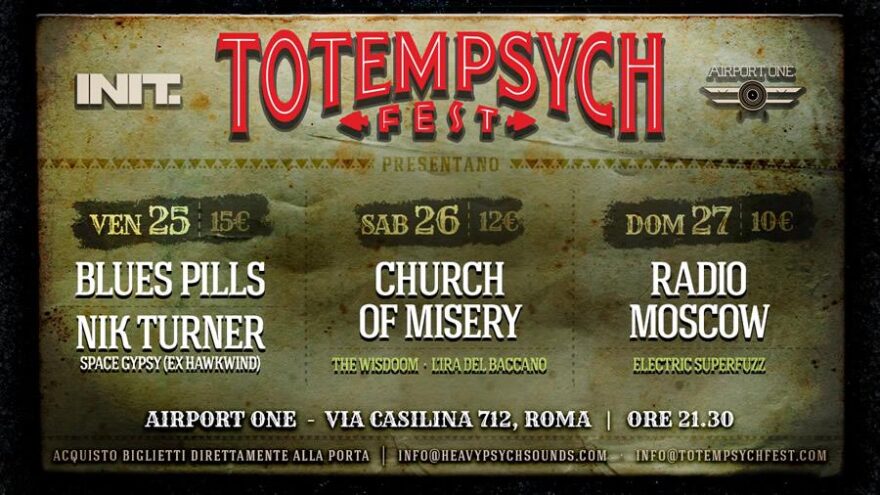 Restiamo fiduciosi e sintonizzati sulle mosse di Heavy Psych Sounds, Rokka Village e Teatro Rigodon Onlus, affinché quella del 2015 possa essere la prima di una vittoriosa serie. Intanto, Totem Psych recupera e riassorbe tre date presso l’Airport One di Roma Vintage in collaborazione con Init.