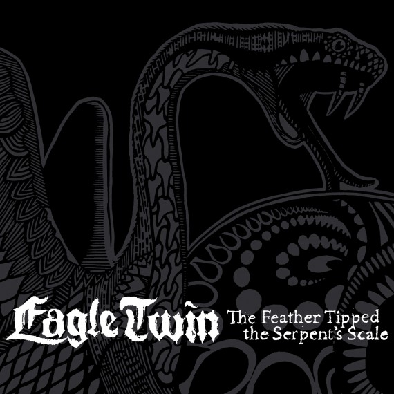 Eagle Twin, ovvero Gentry Densley e Tyler Smith. Due vecchie conoscenze, l’uno per aver militato negli Iceburn prima e nel progetto Ascend poi; l’altro presenza importante nei meno conosciuti Form of Rocket (dove aveva militato pure lo stesso Densley). Insieme hanno iniziato la loro avventura nel 2009 con lo split in compagnia dei Night Terror appena prima del debutto “The Unkindness of Crows”, disco che ha suscitato accesi clamori. La loro musica si può definire come una sorta di doom sperimentale free form, un’elaborazione cupa nella quale fanno capolino elementi psichedelici e per certi versi dronici, senza dimenticare la lezione fondamentale dei Melvins più ostici e deviati.Questo nuovo lavoro intitolato “The Feather Tipped the Serpent’s Scale” arriva a distanza di tre anni e non fa che confermare tale tesi, anzi rincara la dose creando un sound ancor più psicotico, sconnesso e belluino dove la voce di Densley risulta beffarda, aberrante ed al tempo stesso quasi teatrale. Il risultato è uno sludge doom profondamente drammatico e portato alle estreme conseguenze come forse nessuno in questo momento è in grado di fare. Un esempio? Provate ad ascoltare “Snake Hymn”, un brano che testimonia più di qualsiasi altro quanto appena sostenuto. Il mondo terreno che incontra quello spirituale su un palcoscenico dove l’attore recita in modo orrendo e sconclusionato.