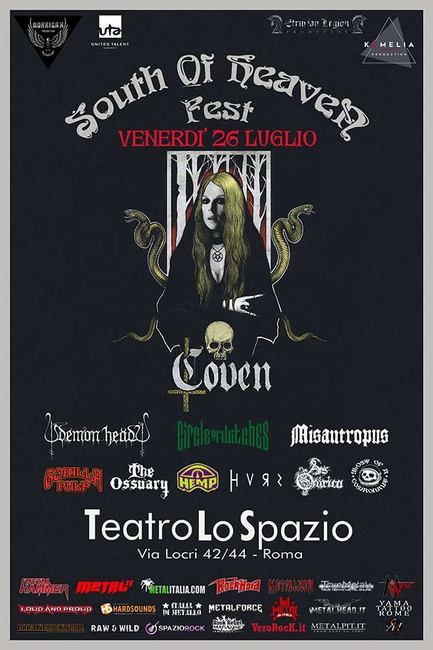 Gli headliner dell’evento sono gli americani Coven, la band della carismatica Jinx Dawson che si esibirà per la prima volta in assoluto in Italia a 50 anni dall’uscita del loro capolavoro, Witchcraft Destroys Minds & Reaps Souls.