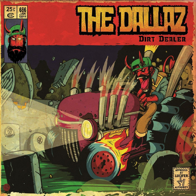 Dopo la bella prova al Perkele Fest Vol.II al Sidro Club di Svignano sul Rubicone i The Dallaz tornano in scena con “Dirt Dealer”, un concentrato di riff assassini e grandi melodie. A partire dalla copertina in stile american comics del grande Kabuto, i nostri hanno dedicato grande impegno alla realizzazione del progetto e questo risulta chiaro in ogni sfumatura: registrazione live in studio per preservare il feelin’ good, produzione compatta e soprattutto una scrittura compositiva che abbraccia quella che comodamente è stata definita First Wave of Italian Stoner Rock. I riferimenti alle band americane ci sono e non sono celati anche se il tutto viene masticato e risputato da perfetti spacciatori di roba buona! Qualche vecchia conoscenza del primo EP “Ozium Idol” rispunta fuori con una veste nuova, come la fumanchana “FurGone”, strepitosa nel titolo e nello sbatterti in faccia tre minuti e mezzo di sintesi hard Seventies, e la conclusiva “Losers”, post blues alla Roachpowder con tanto di chorus da corna al cielo. Nel mezzo troviamo riuscite evaporazioni del verbo Daredevil con “I Do Nothig”, “Octopussy” e “Ridin’ in My Mind” e ruspanti anthem carne e patate come “I Want Speed”, “Eye of the Wolf” e “Bringing Back the Dead”, dove risulta meglio allestita la nuova line-up della band e l’alternanza di voci tra un pezzo e l’altro funziona alla grande. Non solo. Ad accompagnare i nostri ci sono ospiti graditi e featuring speciali, come l’armonica più slide guitar nella southern cult “Travellin’ Blend” e i samples vocali presi da film Sixties che danno uno bella patina di polvere al tutto.